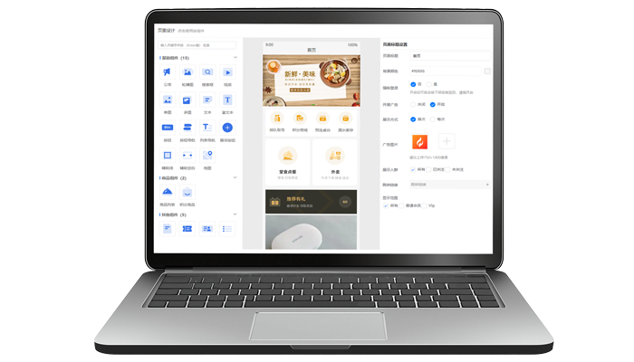 通过拖拽模块(文字、图片、按钮等)即可完成页面设计,实时调整布局、配色、字体,即时预览效果。
